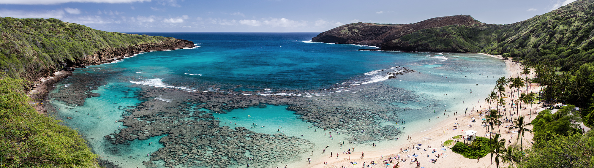 O’ahu is also home to ‘Iolani Palace where the Hawaiian monarchy once resided and is revered by all people of Hawai’i. Flying into Honolulu you will see some of the most stunning white sandy beaches stretching for miles and the pristine blue waters where surfers and sun bathers alike venture to. On the West Coast of the island you will see attractions such as Disneyland’s Aulani resort and Wet N’ Wild Waterpark. O’ahu is considered to be one of the most popular destinations in the Hawaiian Islands for fishing, hiking the many trails across the island and visiting historic Pearl Harbor.